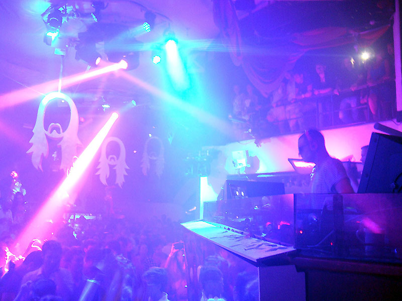 Avant lui, c'est le DJ néerlandais Afrojack ―de 20 ans son cadet― qui fait bouger, mais surtout chanter le public au son de sa dance tapageuse. Un grand écran affiche les paroles des chansons, façon karaoké géant. Plus de 6000 personnes sont agglutinées, une bonne partie trône dans l'espace VIP pour celles qui peuvent débourser plus de 2000 euros pour une table et des bouteilles d'alcool. C'est la "transgression tolérée, encadrée et commercialement organisée" que décrit le philosophe Yves Michaud dans Ibiza mon amour*.