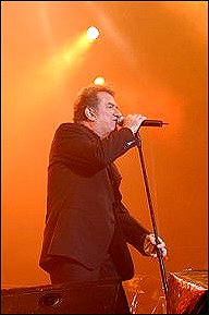 Le deuxième s’appelle Eddy Mitchell ou Mr Eddy. Celui là ne donne pas de conférence de presse. A l’instar d’ailleurs de Louise Attaque, le groupe le plus attendu de ces Vieilles Charrues et qui nous a réservé une prestation moyenne et peu convaincante. Mais Mr Eddy lui, après la sortie d’un album, le début d’une tournée interrompue pour cause de problèmes de santé puis reprise avant qu’il ne se casse le bras, Mr Eddy donc, bénéficie d’un capital sympathie auprès du public qui le dispense presque des opérations de communication. Seul le concert compte et c’est tant mieux. Car Eddy Mitchell sur scène, c’est un show carré, à l’américaine avec une vraie section de cuivre. Cela ne l’empêche pas d’y ajouter une formation de cordes qui lors des quelques morceaux plus lents donne une nuance romantique. Entre crooner et rocker, Monsieur Eddy n’a pas choisi. Ici, un Rio Grande tout en rondeur, là un Pas de boogie woogie à déhancher un public qui n’attend que ça ou un Couleur menthe à l’eau qui rappelle à quelques-uns leurs 20 ans. Le concert est réglé de façon à ce qu’il n’y ait pas de temps mort (ce qui n’est pas le cas de Louise Attaque). Tout est parfait comme la coupe du costume noir de l’artiste. Rien à dire et c’est bien ça le problème.