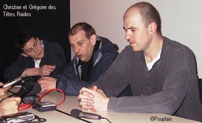 Les membres des Têtes Raides sont plus portés sur le partage : « Des échanges avec des groupes, on en a tous les jours, avec les Casse Pipe, Noir Désir, Jean Corti, Yann Tiersen. L’échange, avec des musiciens ou des gens anonymes, c’est toujours positif. » D’ailleurs, Iso rappelle que depuis leur première galette qu’ils sont venus vendre eux-mêmes à Bourges en 89, ils ont toujours eu des invités. Avec Tiersen, sur scène ce soir-là avant eux, l’échange a toujours été fort : « Ça ne se raconte pas, ça se vit. C’est un bout de vie. C’est de la musique. Avec lui, on n’a jamais eu besoin de se poser de questions. On a quelque chose à se raconter. C’est aussi une façon de remettre en question comment on fait de la musique. »
