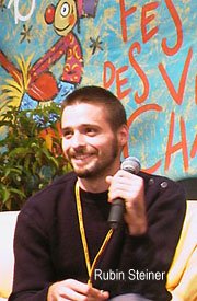 Sur scène, avec ses acolytes (le contrebassiste Sylvestre, le trombonettiste Benoît et le Mr vidéo, François), Rubin Steiner danse, rigole, boit de la bière. Mais pour un tel groupe, plus adapté aux clubs et petits lieux, les limites d’une prestation dans un gros festival rock-chanson sont vite atteintes. La plupart des morceaux sont plutôt faits pour les dancefloors. Peu importe, tout le monde joue le jeu. Ce qui est certain, c’est que sa house accroche même ceux qui viennent de suer sur Noir Désir. Alors pourquoi Daft Punk ou Air et pas Rubin Steiner ? La question est posée.