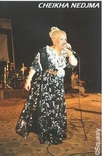 A 36 ans, Cheikha Nedjma, dernière star en date au bled, joue énormément de cette dualité, de cette ambivalence. Ovationnée lors de son passage sur la scène du Théâtre (son premier hors cabaret et mariage), elle se pose en digne héritière de Cheikha Rimitti. Découverte il y a seulement deux ans, cette jeune femme aux cheveux blonds décolorés et à la chaînette en or qui court de son nez à son oreille est originaire de Bel Abbès. Surnommée Cheikha Canal+ ou Cheikha Journal du Hard pour ceux qui n’auraient pas compris l’allusion à la chaîne cryptée française, elle dispense un langage cru au service d’une certaine provocation. Il faut dire que depuis des générations, le chaâbi algérois et ses allégories suggestives avaient habitué le public à une approche beaucoup plus courtoise de l’amour. Pourtant la diva qui vaut son pesant d’or, se défend d’être vulgaire : «J’ai commencé à chanter à l’âge de 15 ans en accompagnant des chioukhs et des cheikhates. A 18 ans, je me suis mariée à un homme que j’aimais énormément et avec qui j’ai eu trois enfants. J’ai arrêté alors mes activités. Je n’ai repris qu’après mon divorce. Mon mari m’avait trompée. Je n’ai pu l’accepter. Comme je ne savais rien faire d’autre que chanter, j’ai replongé. Je chante trois fois par semaine dans les cabarets et suis très demandée dans les mariages. Mon chant est ma façon de lutter contre l’oppression de la femme» déclare-t-elle, tout en glissant quelques hymnes à destination des militaires et autres forces de l’ordre.