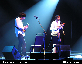 La soirée fut si riche qu’on en eut presque de l’embarras dans le choix des sujets... Tenez : on aurait pu parler du show très intimiste de la bête de scène Yann Perreau, l’un des talents les plus audacieux et les plus physiques de la jeune scène québécoise. Evoquer le spectacle franchement planant des Karkwa, lauréats l’an passé du Prix Leclerc, en résidence cette année pour trois concerts uniques, et qui viennent de livrer un set tout musical en conviant aux claviers la très prisée Ariane Moffatt. On aurait pu encore vous conter le duo des ukulélés présenté par Thomas Fersen – une option radicale, amusante un moment, mais vite assez lassante. Ou commenter enfin la prestation charmante de Valérie Leulliot, l’ex-chanteuse d’Autour de Lucie désormais en solo – sauf quand Florent Marchet vient la rejoindre en scène...